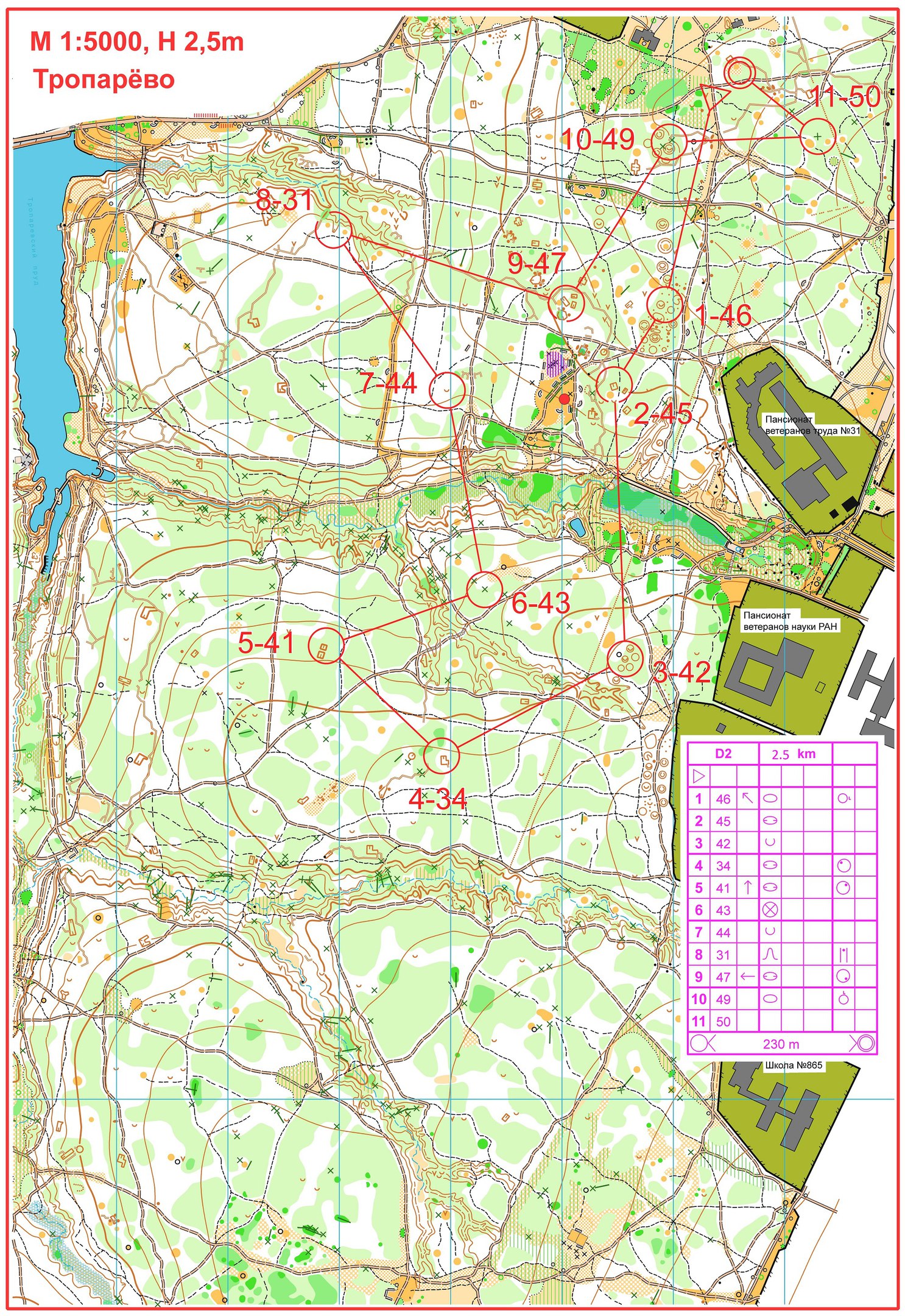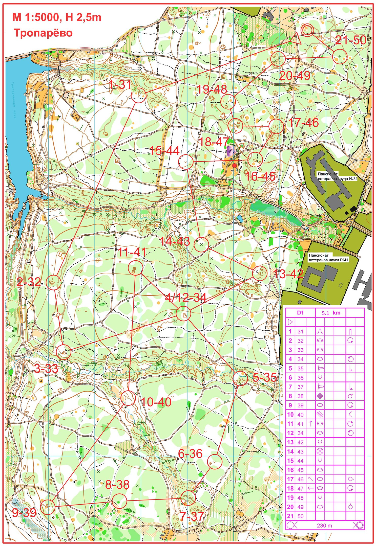 1. короткая 2.5 км 14 кп, масштаб 1:5000
